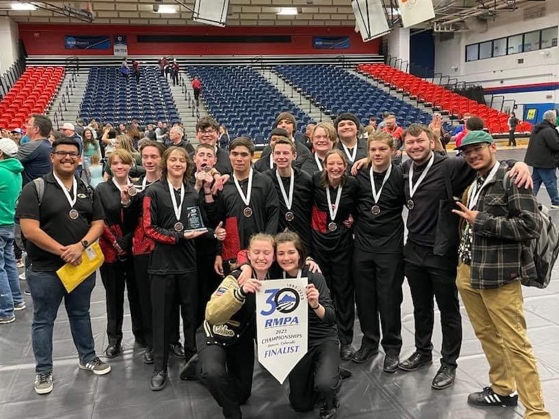 The PVHS Winter Percussion ensemble competes throughout the winter and spring seasons of RMPA (Rocky Mountain Percussion Association). The ensemble is open to all students in the district from grade 8-12 (with some exceptions) regardless of previous experience. The ensemble provides another opportunity for students to perform while focusing on the development of percussion skills and fundamentals. The percussion ensemble rehearses outside of the school day and competitions are regularly held on Saturdays
